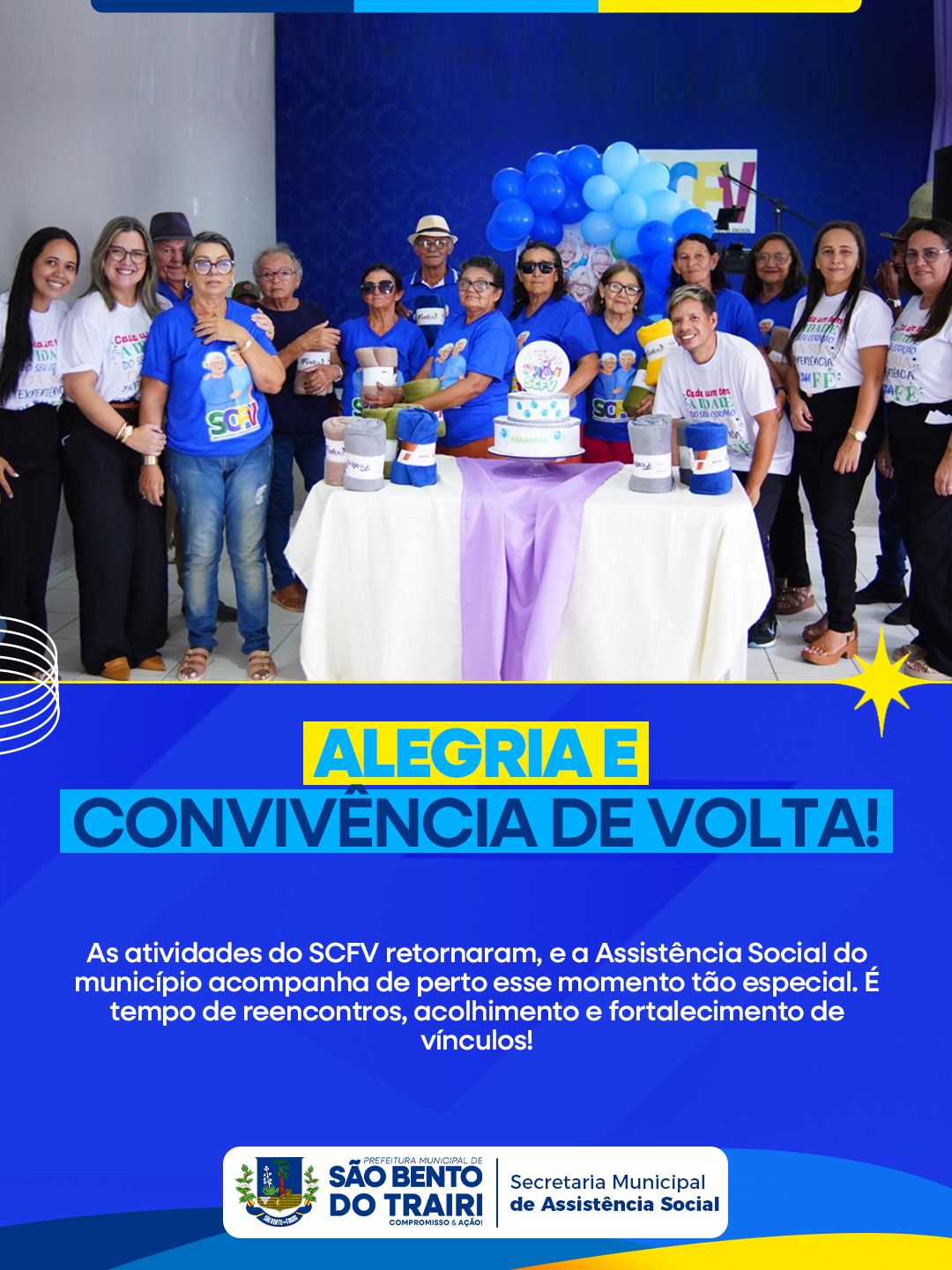 As atividades do SCFV retornaram, e a Assistência Social do município acompanha de perto esse momento tão especial. É tempo de reencontros, acolhimento e fortalecimento de vínculos!
