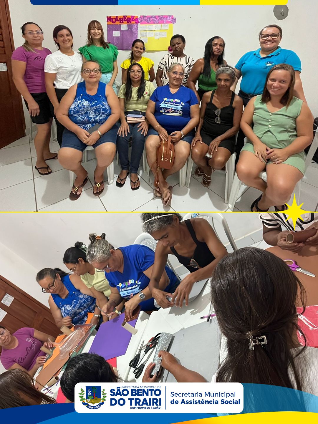 O momento, conduzido pelas técnicas do CRAS e pelas oficineiras do Programa Criança Feliz (PCF), proporcionou uma rica troca de experiências, reflexões sobre o cuidado consigo mesma, com a família e com a comunidade, além de fortalecer o apoio mútuo entre as participantes.
