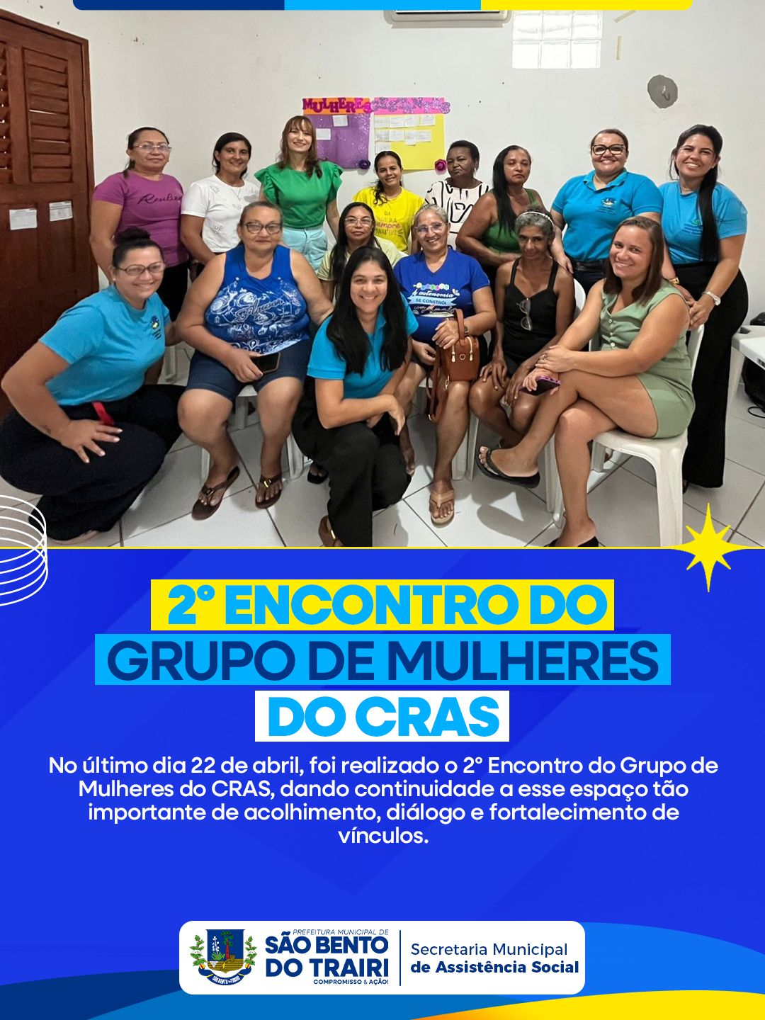 No último dia 22 de abril, foi realizado o 2º Encontro do Grupo de Mulheres do CRAS, dando continuidade a esse espaço tão importante de acolhimento, diálogo e fortalecimento de vínculos.