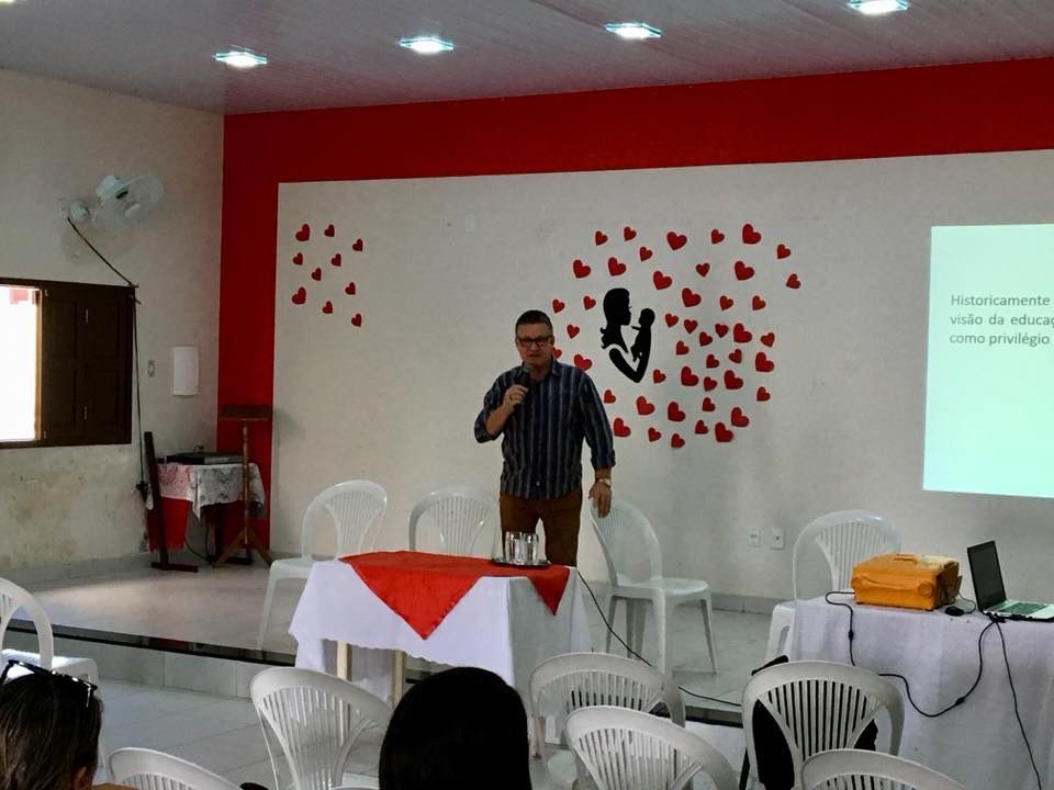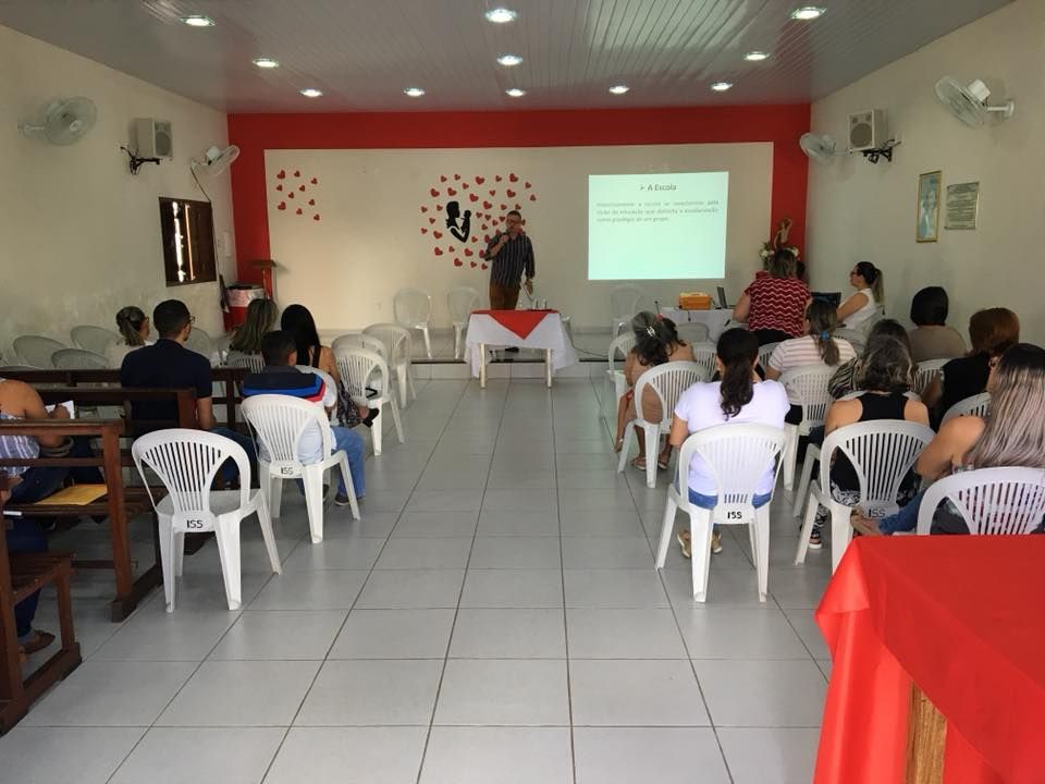A Secretaria Municipal de Educação realizou nesta terça-feira 31/07/2018 uma formação para todos os professores da rede municipal de ensino. O tema da formação foi: Educação Especial na Perspectiva da Educação Inclusiva. A formação foi ministrada pelo professor Joiran Medeiros da Silva, Coordenador Pedagógico da Subcoordenadoria Estadual de Educação. Além de possibilitar melhores condições para os professores trabalharem alunos com necessidades especiais, atendendo ações da meta 4 do PME, também contribuiu para uma das ações do Centro de Referência de Assistência Social (CRAS). A Secretaria Municipal de Educação de São Bento do Trairi é grata a Secretaria de Educação do Estado do Rio Grande do Norte pelo atendimento a esta solicitação fortalecendo as parcerias.