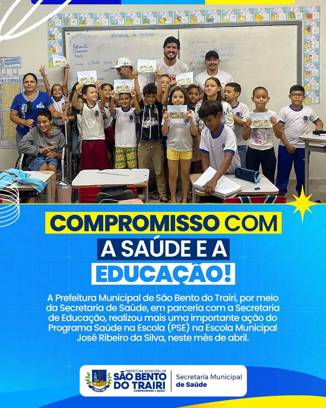 A Prefeitura Municipal de São Bento do Trairi, por meio da Secretaria de Saúde, em parceria com a Secretaria de Educação, realizou mais uma importante ação do Programa Saúde na Escola (PSE) na Escola Municipal José Ribeiro da Silva, neste mês de abril.