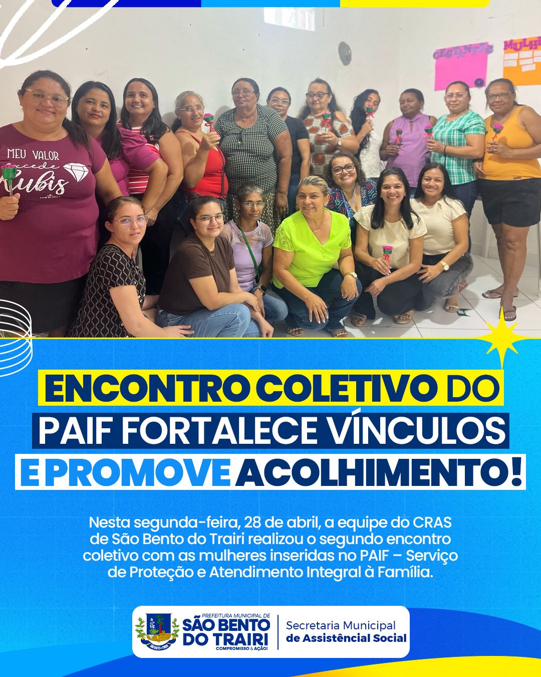 Nesta segunda-feira, 28 de abril, a equipe do CRAS de São Bento do Trairi realizou o segundo encontro coletivo com as mulheres inseridas no PAIF – Serviço de Proteção e Atendimento Integral à Família.