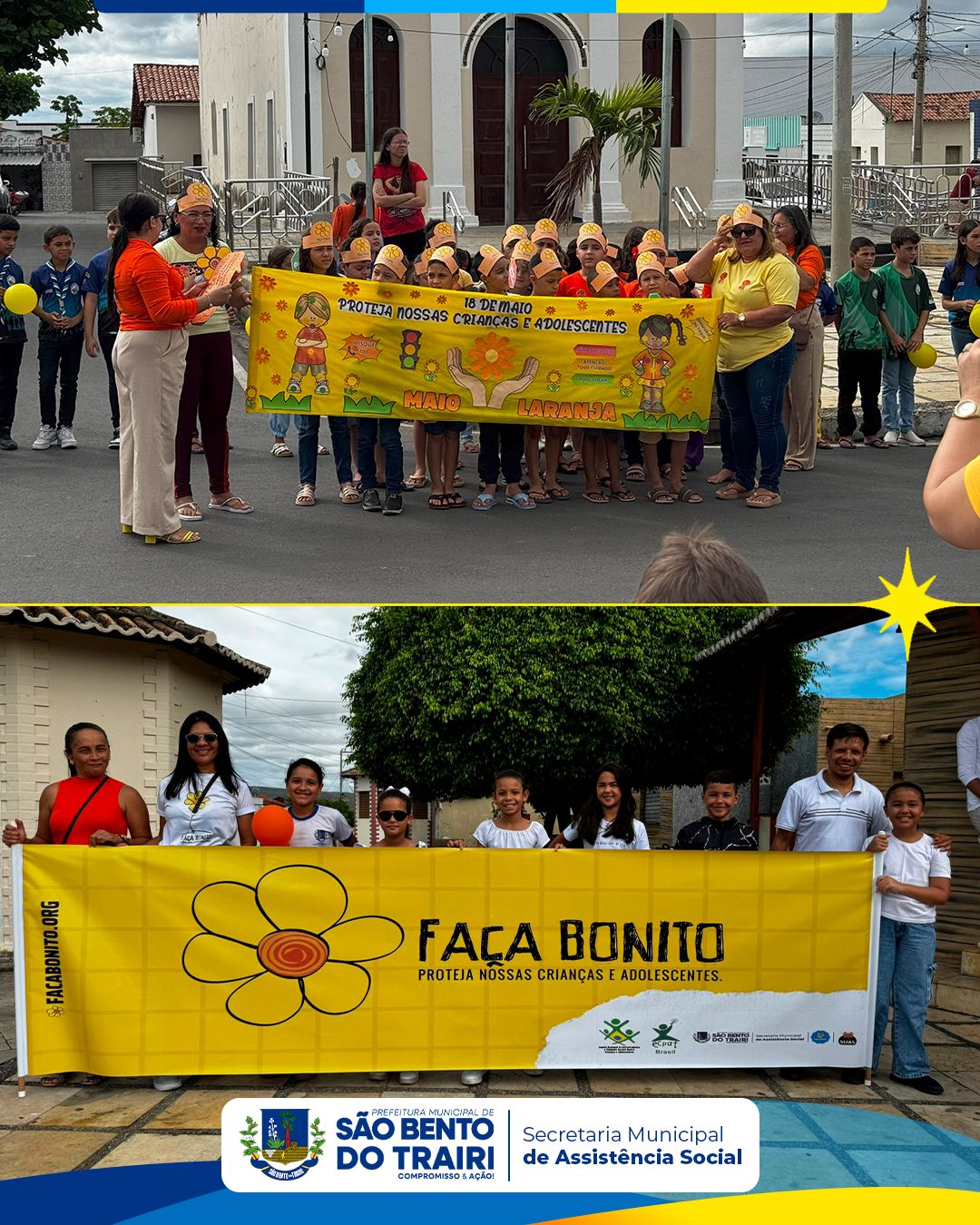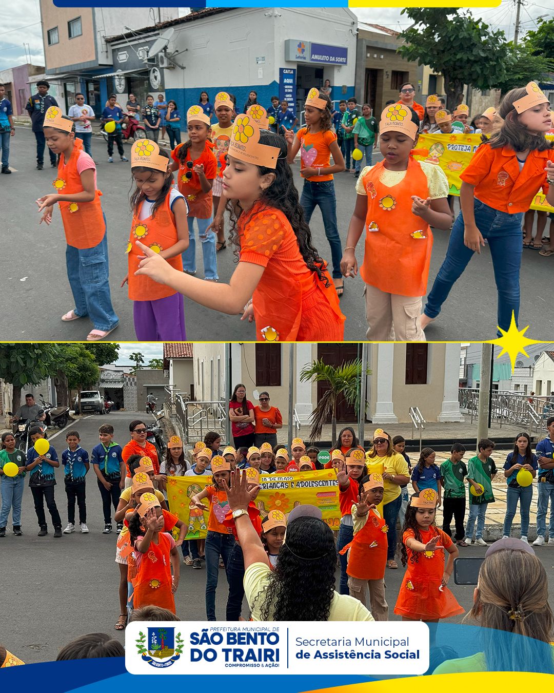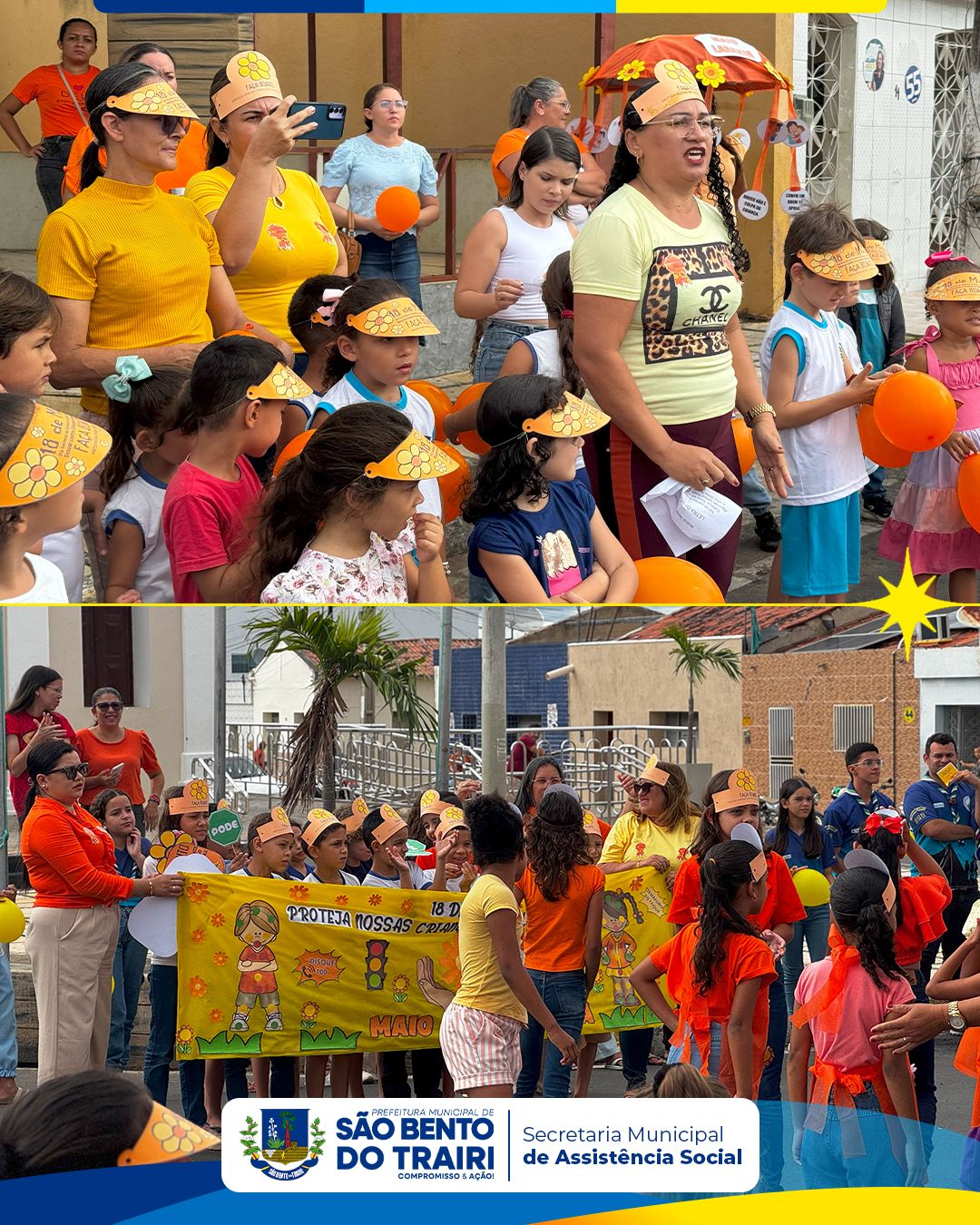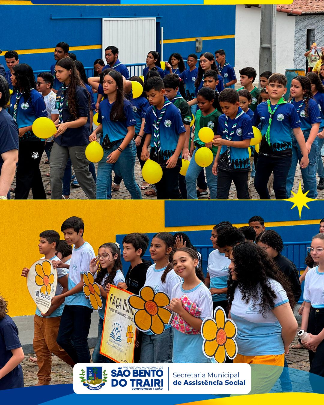 No dia 16 de maio, a Secretaria Municipal do Trabalho, Habitação e Assistência Social, em parceria com o Conselho Tutelar e as Secretarias Municipais de Saúde e Educação, realizou uma caminhada de conscientização em alusão ao 18 de Maio – Dia Nacional de Combate ao Abuso e à Exploração Sexual contra Crianças e Adolescentes.