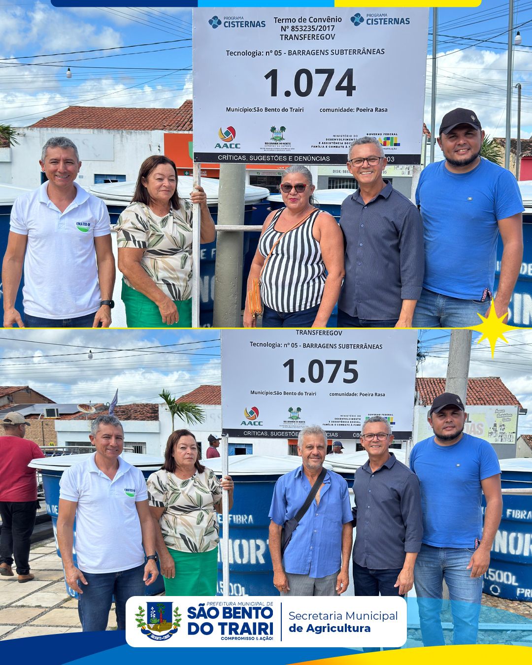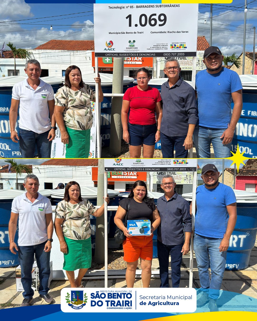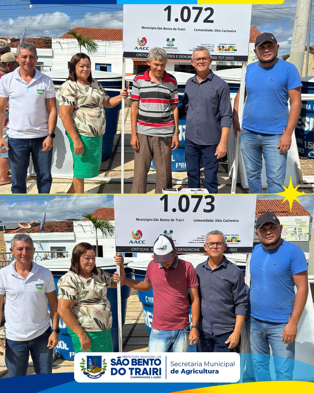 A Prefeitura Municipal de São Bento do Trairi realizou a entrega dos materiais (caixa d’água, bomba e placa de identificação) das 11 barragens construídas nas comunidades rurais do nosso município.