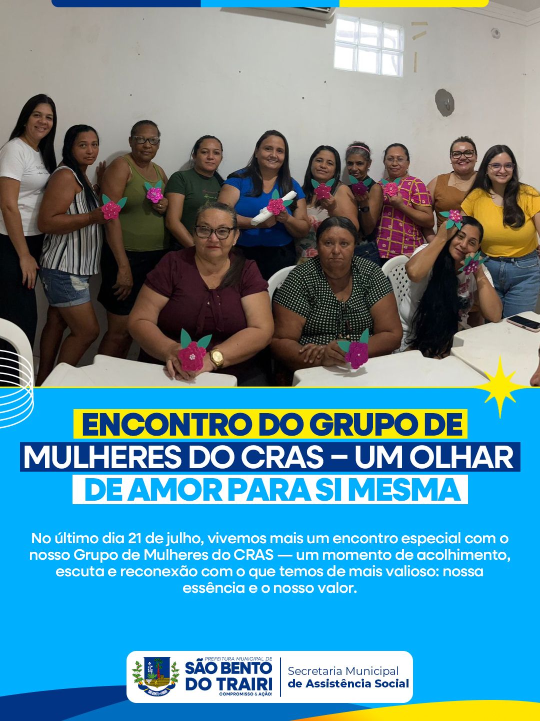 No último dia 21 de julho, vivemos mais um encontro especial com o nosso Grupo de Mulheres do CRAS — um momento de acolhimento, escuta e reconexão com o que temos de mais valioso: nossa essência e o nosso valor.