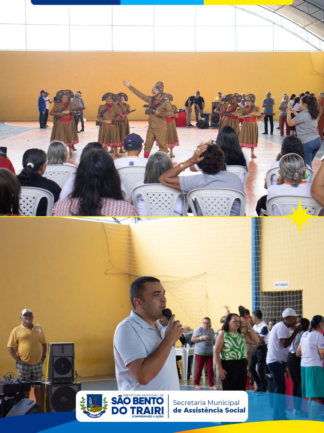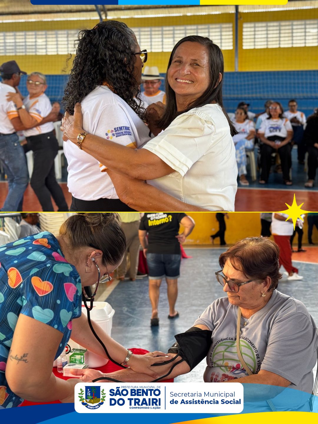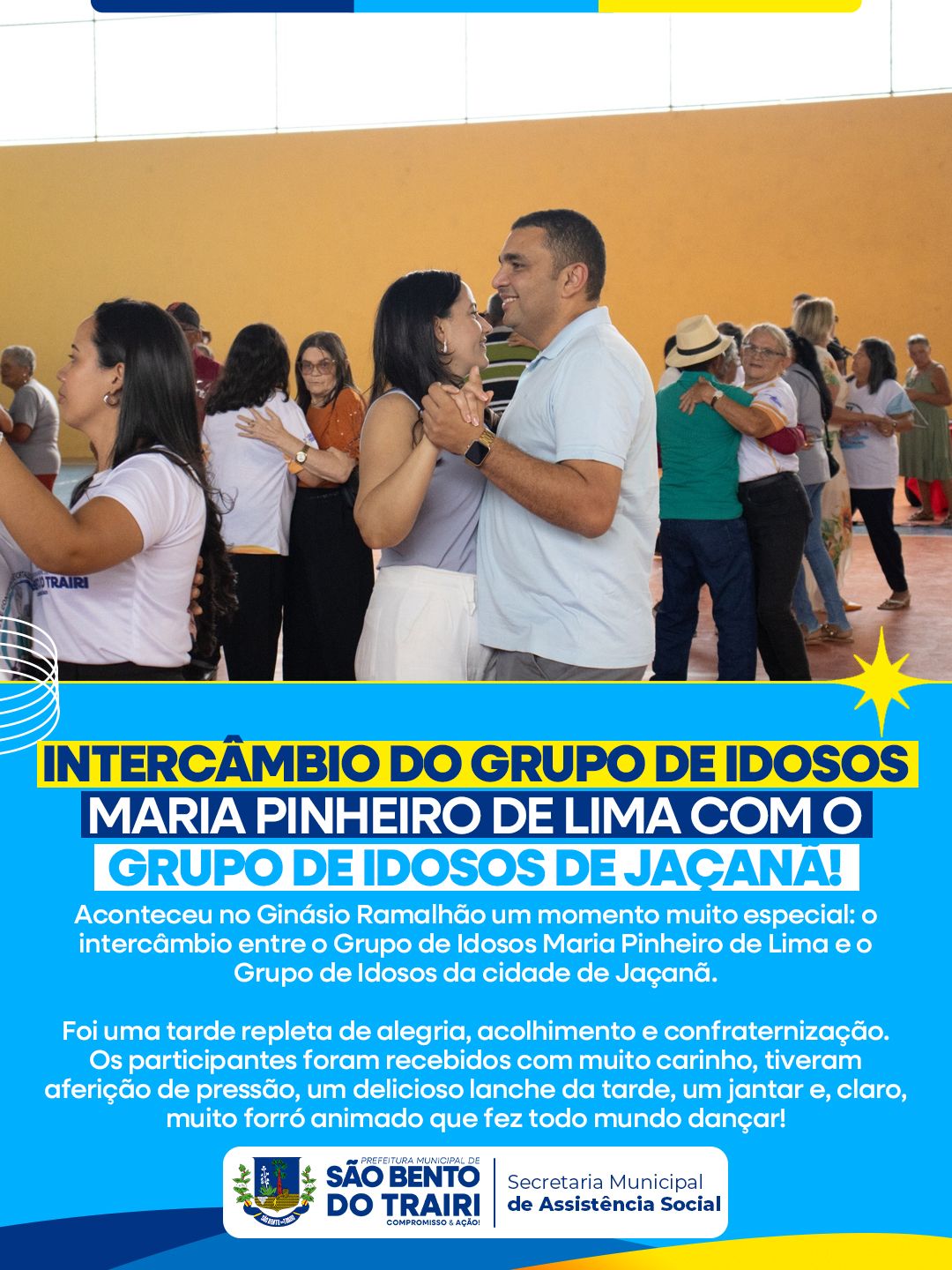 Aconteceu no Ginásio Ramalhão um momento muito especial: o intercâmbio entre o Grupo de Idosos Maria Pinheiro de Lima e o Grupo de Idosos da cidade de Jaçanã.