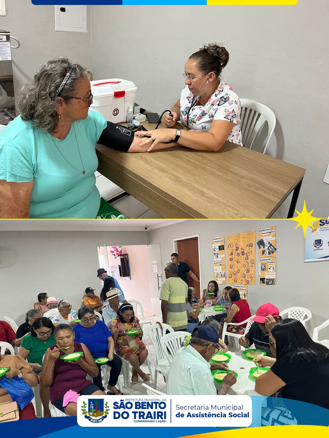 Além da palestra, o encontro contou com aferição de pressão, garantindo cuidado e atenção à saúde dos participantes. E para tornar a tarde ainda mais animada, tivemos muito forró e um delicioso jantar de confraternização.