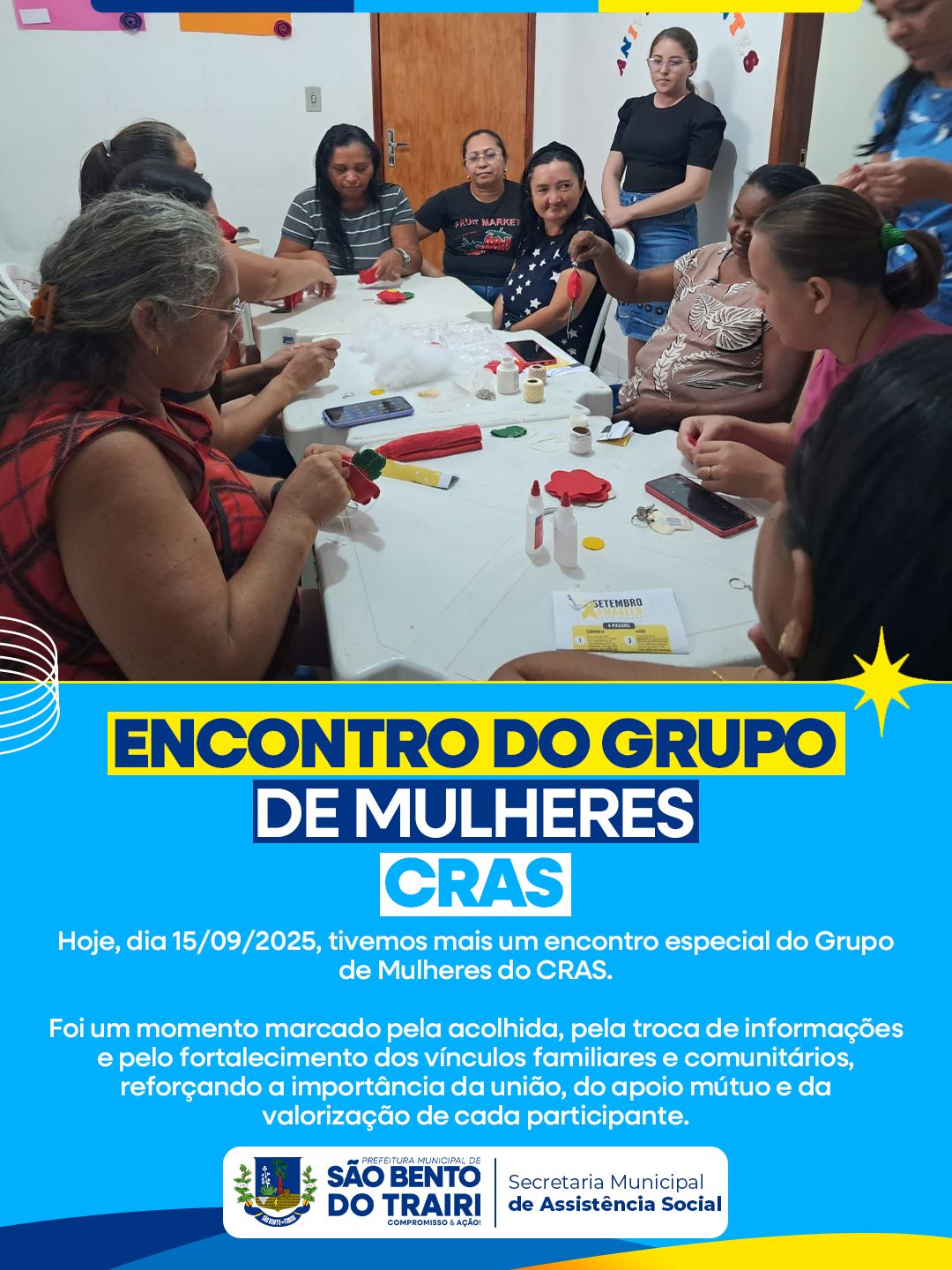 Hoje, dia 15/09/2025, tivemos mais um encontro especial do Grupo de Mulheres do CRAS.