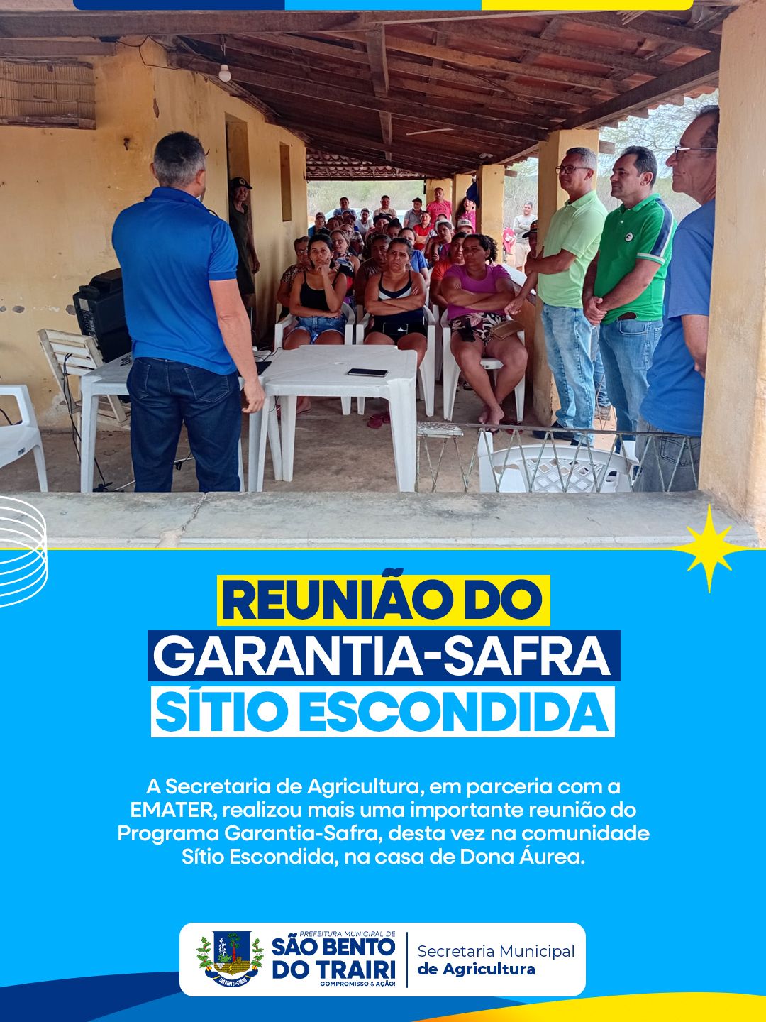 A Secretaria de Agricultura, em parceria com a EMATER, realizou mais uma importante reunião do Programa Garantia-Safra, desta vez na comunidade Sítio Escondida, na casa de Dona Áurea.