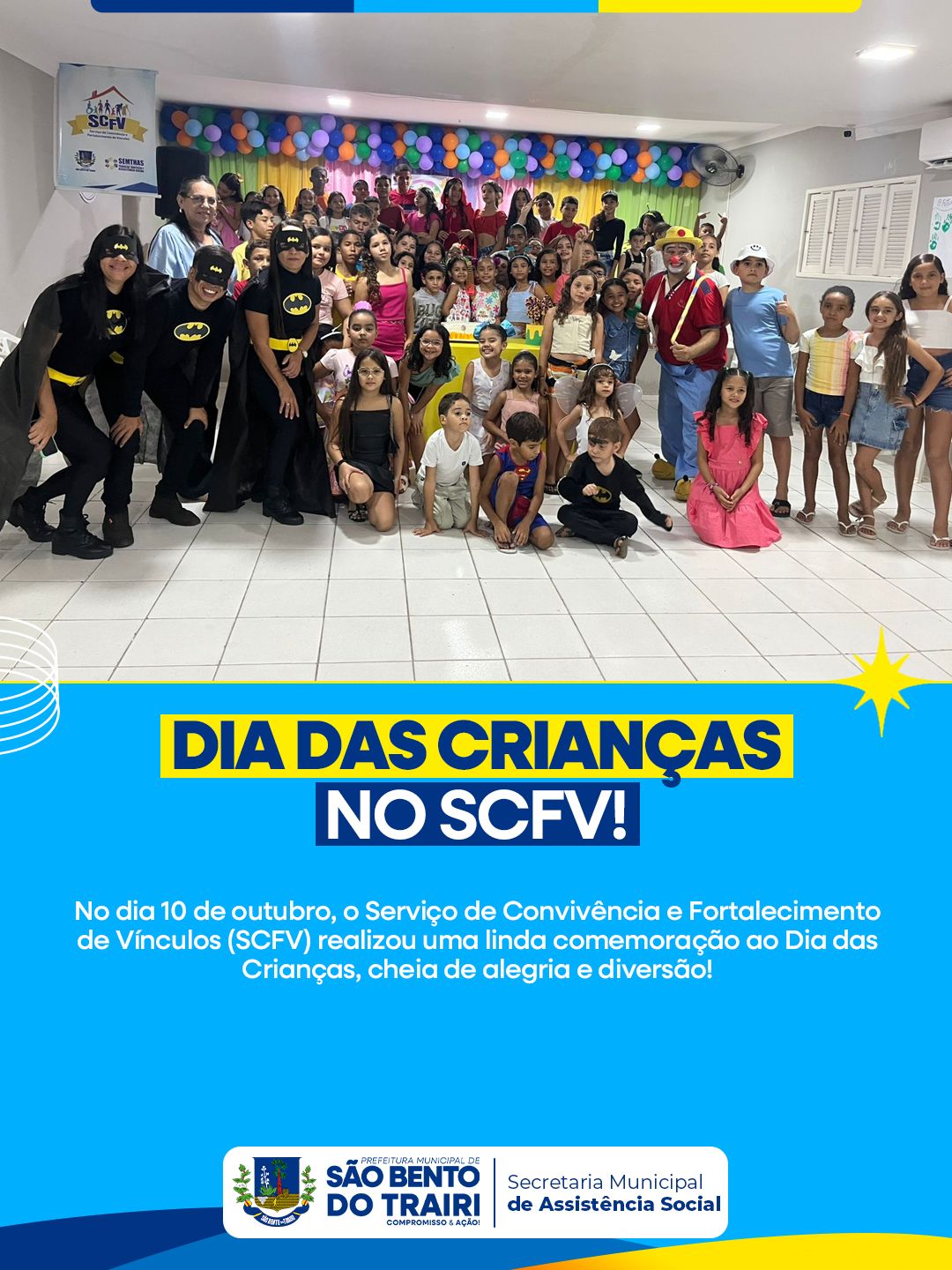 No dia 10 de outubro, o Serviço de Convivência e Fortalecimento de Vínculos (SCFV) realizou uma linda comemoração ao Dia das Crianças, cheia de alegria e diversão!