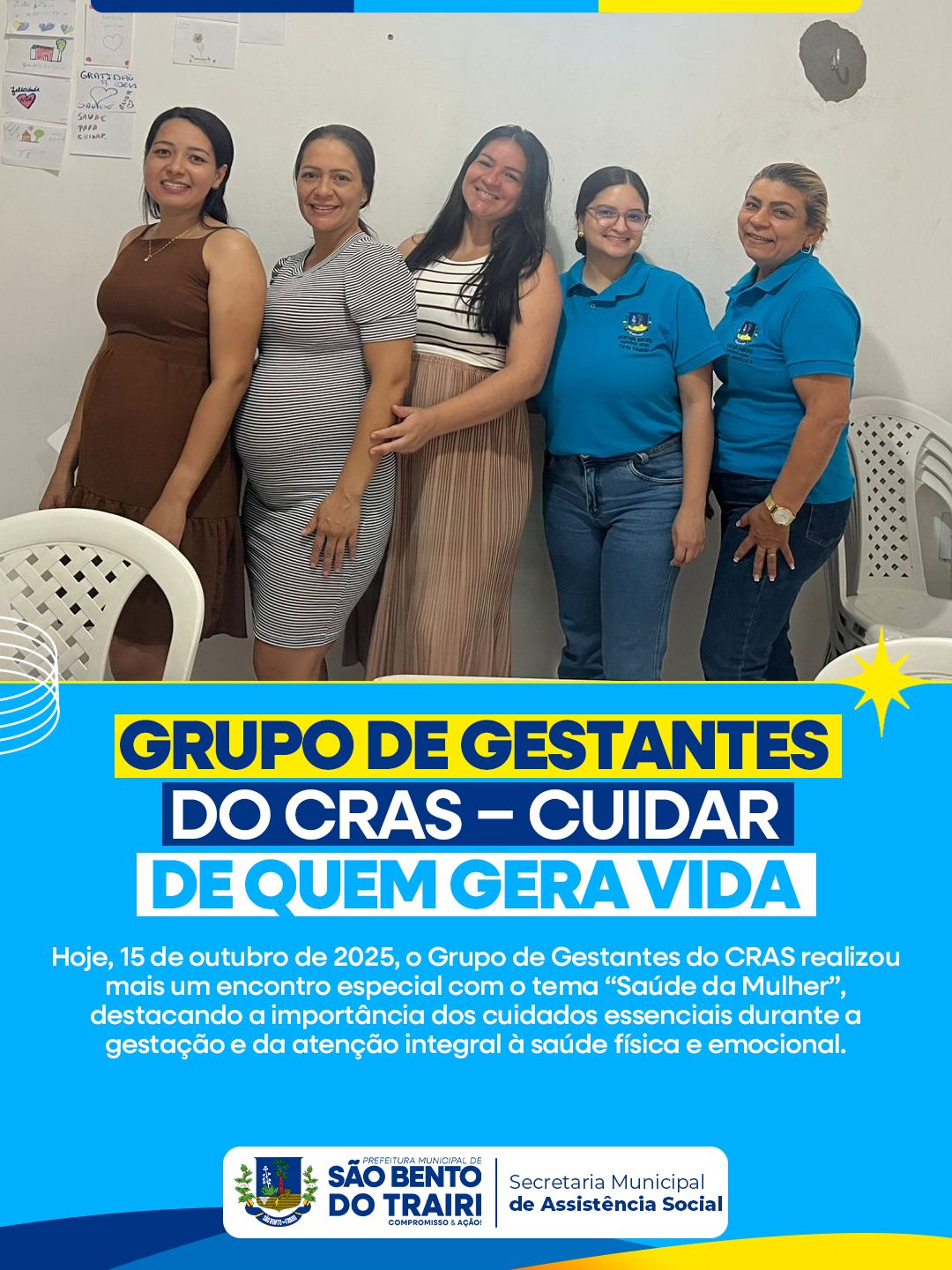 Hoje, 15 de outubro de 2025, o Grupo de Gestantes do CRAS realizou mais um encontro especial com o tema “Saúde da Mulher”, destacando a importância dos cuidados essenciais durante a gestação e da atenção integral à saúde física e emocional.