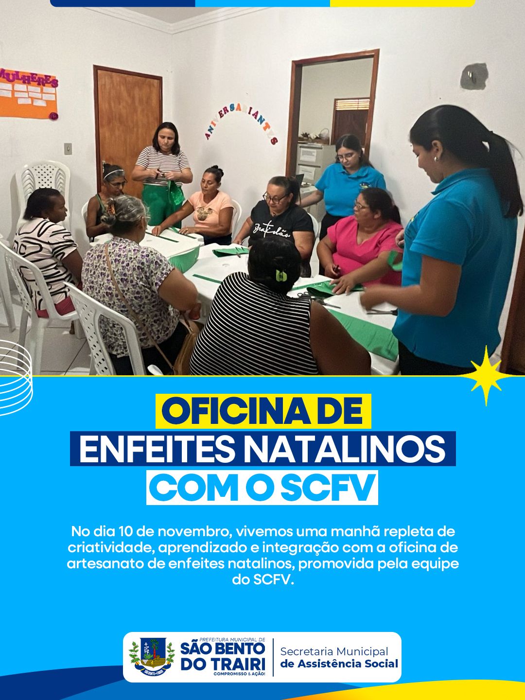 No dia 10 de novembro, vivemos uma manhã repleta de criatividade, aprendizado e integração com a oficina de artesanato de enfeites natalinos, promovida pela equipe do SCFV.
