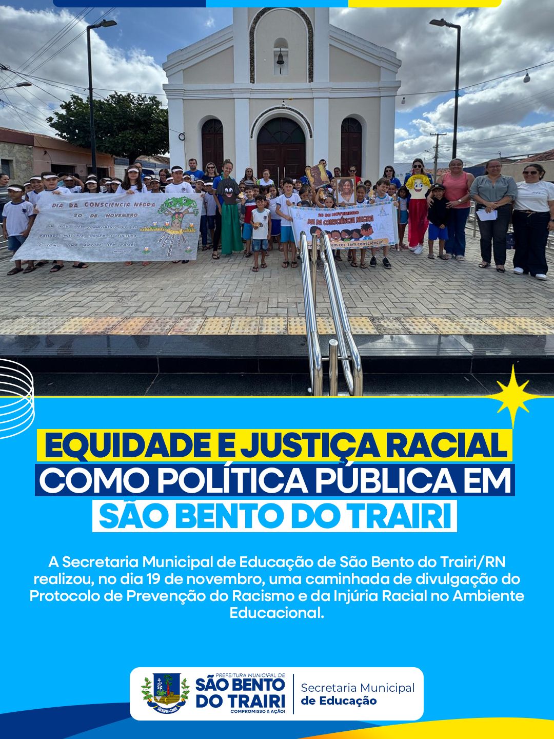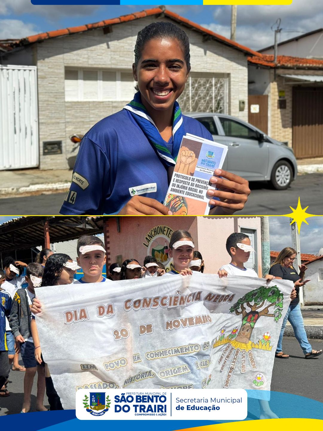 A Secretaria Municipal de Educação de São Bento do Trairi/RN realizou, no dia 19 de novembro, uma caminhada de divulgação do Protocolo de Prevenção do Racismo e da Injúria Racial no Ambiente Educacional.