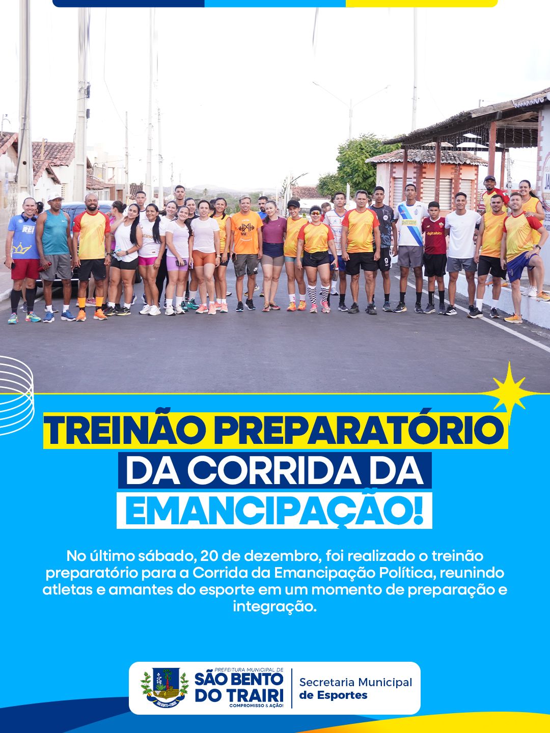 No último sábado, 20 de dezembro, foi realizado o treinão preparatório para a Corrida da Emancipação Política, reunindo atletas e amantes do esporte em um momento de preparação e integração.
