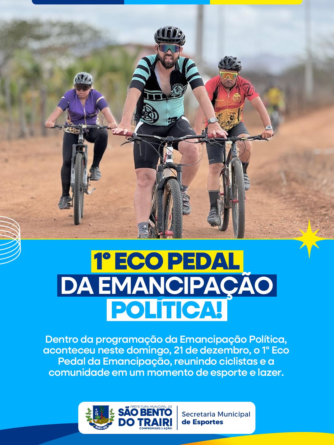 Dentro da programação da Emancipação Política, aconteceu neste domingo, 21 de dezembro, o 1º Eco Pedal da Emancipação, reunindo ciclistas e a comunidade em um momento de esporte e lazer.