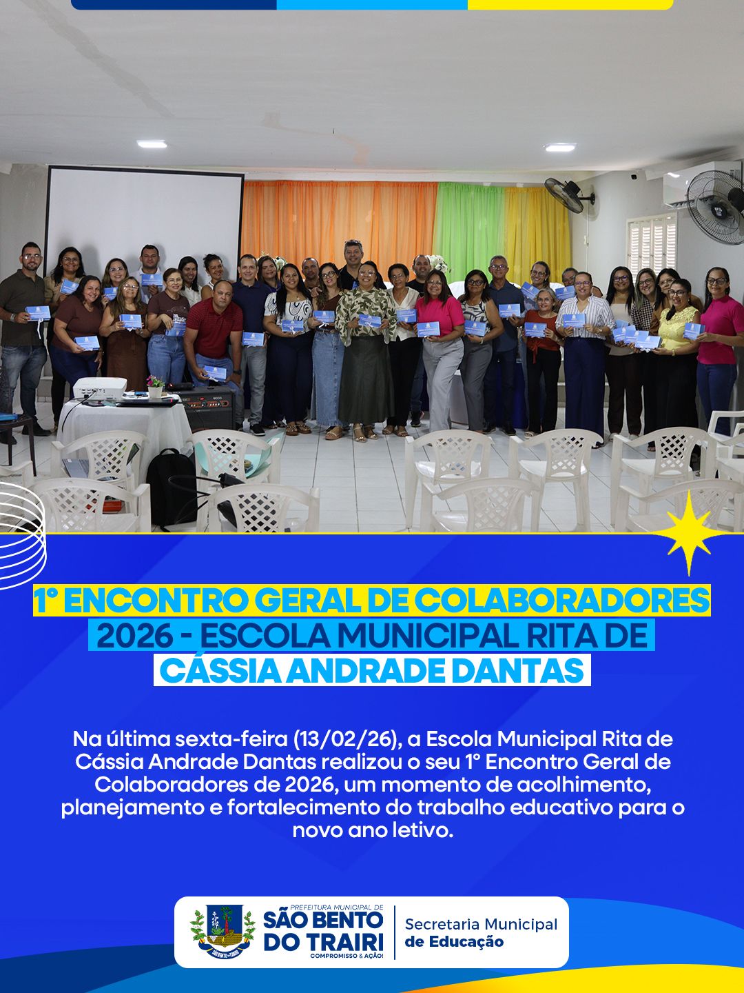 Na última sexta-feira (13/02/26), a Escola Municipal Rita de Cássia Andrade Dantas realizou o seu 1º Encontro Geral de Colaboradores de 2026, um momento de acolhimento, planejamento e fortalecimento do trabalho educativo para o novo ano letivo.