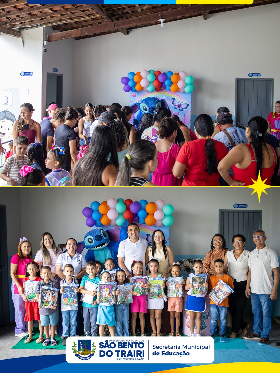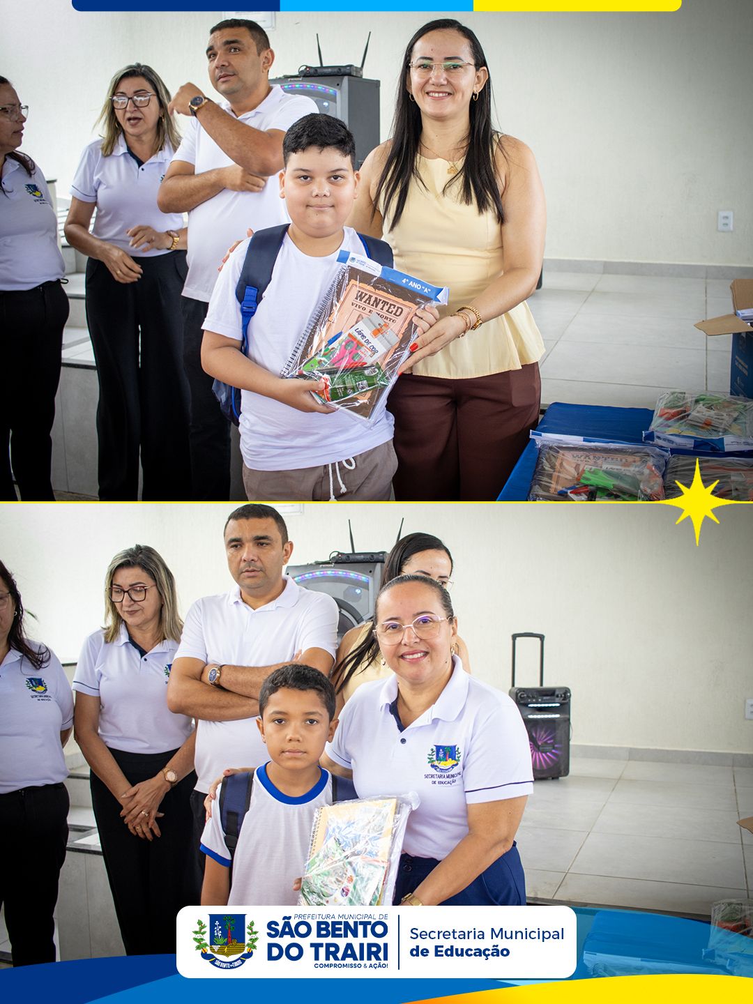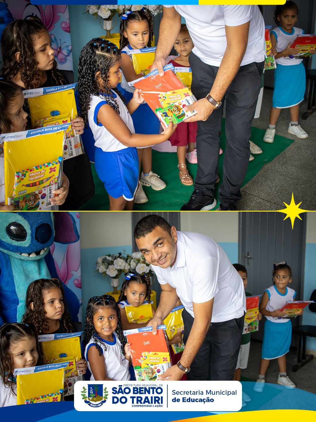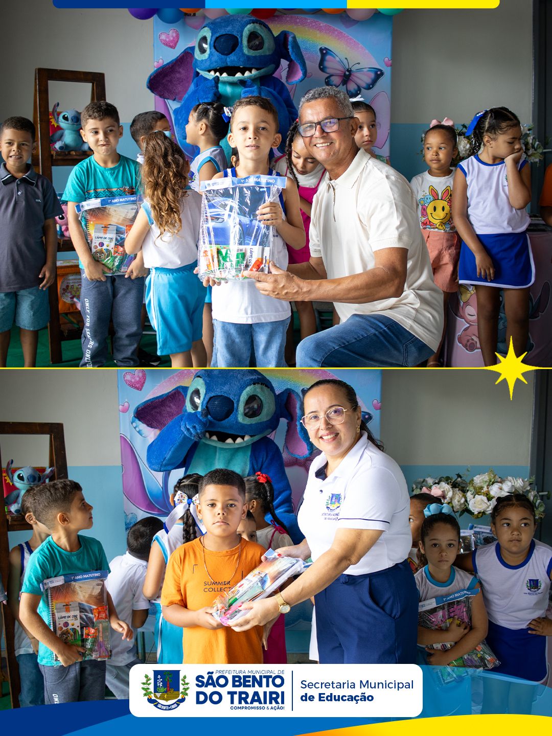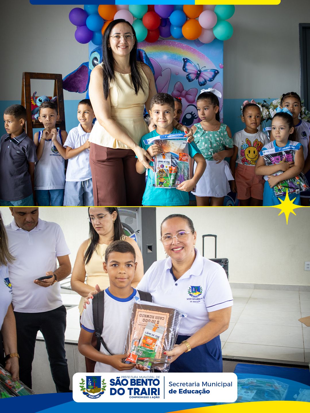Na ocasião, também foi realizada a entrega dos kits escolares para todos os alunos da rede municipal, garantindo mais apoio às famílias e melhores condições para o desenvolvimento das atividades em sala de aula.